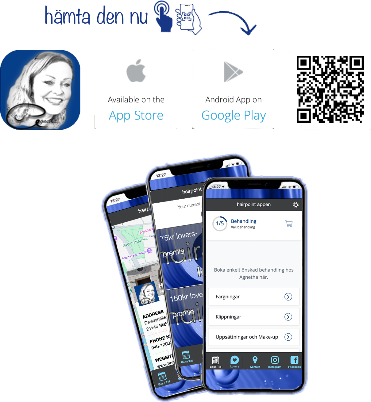 Boka tid, samla inspiration och få erbjudanden direkt i mobilen. Och missa inte dina Hairpoint Lovers hjärtan-poäng som växer med varje besök och belönar dig med något extra speciellt (se mer nedan)